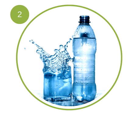 Dividere i 2 litri d’acqua in 4 bottiglie da 500 ml e bere 4 volte al giorno.